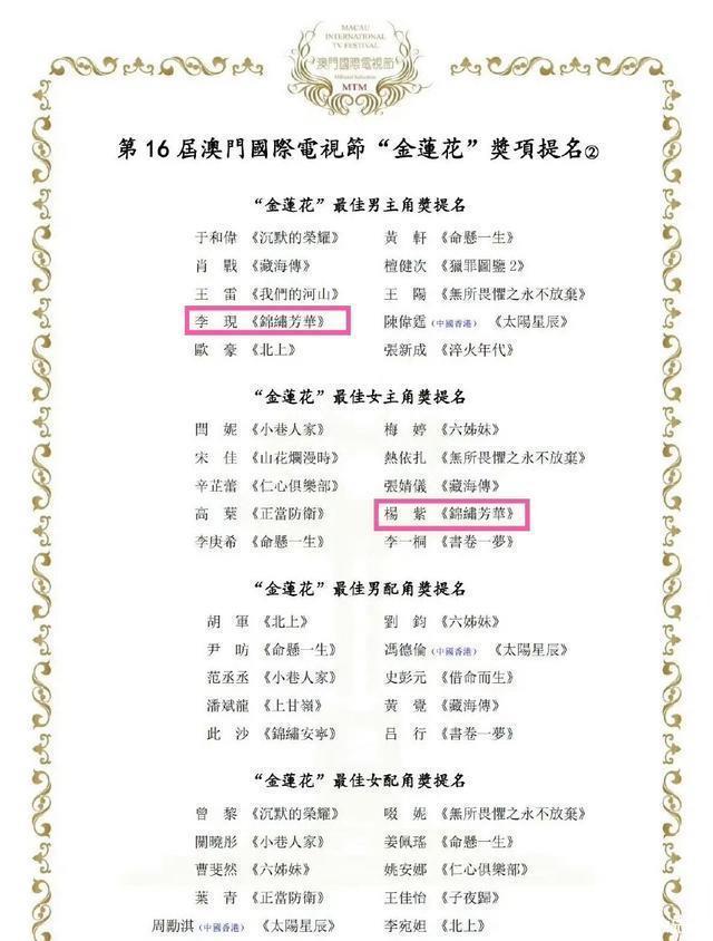 2025年11月24日,第16届澳门国际电视节金莲花奖提名名单重磅揭晓,现象级剧集《锦绣芳华》成最大赢家,一举斩获最佳电视剧、导演等6项核心提名配资咨询平台,而杨紫与李现这对国民CP的三搭同提,更是引爆全网“爷青回”狂欢。