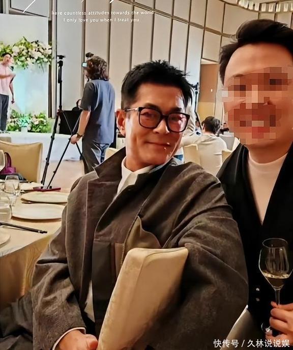 照片里的古天乐穿了一套浅灰色的西装,领带都松松垮垮的,站那儿虽然不想抢镜头,但却稳稳地掌控着整个场面。