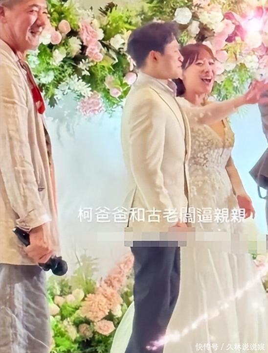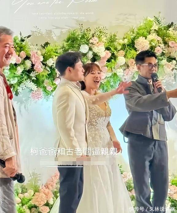 现场古天乐还调侃着让两位新人亲吻,弄得新郎害羞得脸都红了。